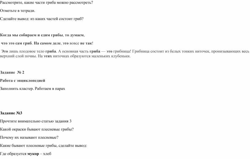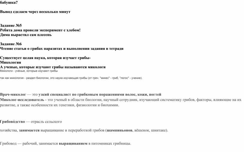 Задание №6 Чтение статьи о грибах паразитах и выполнении задания в тетради