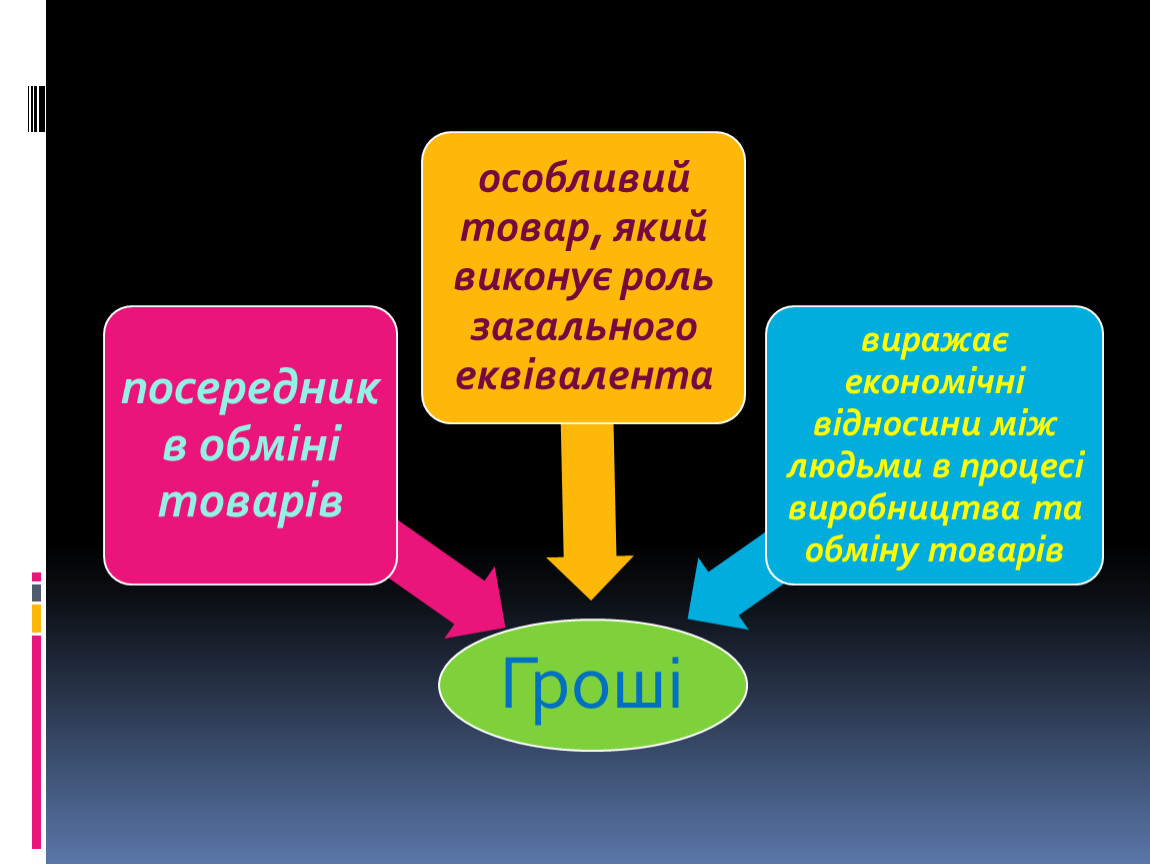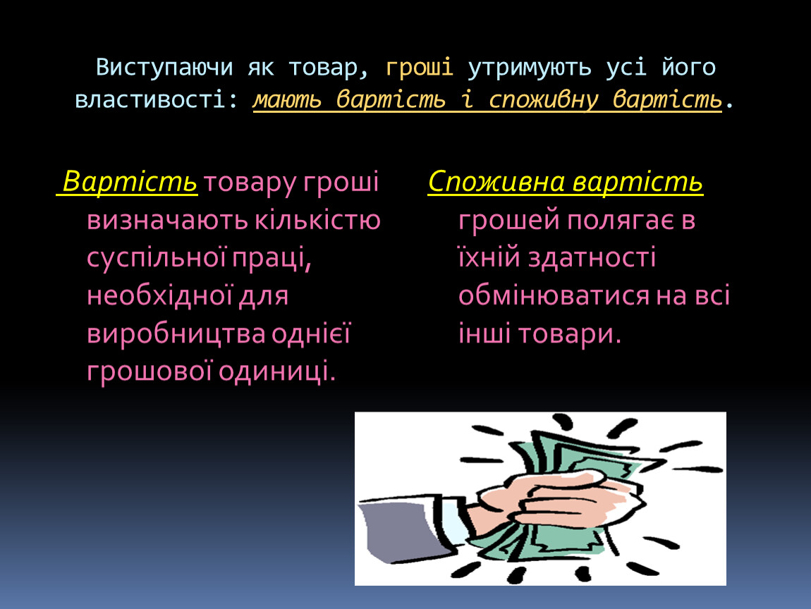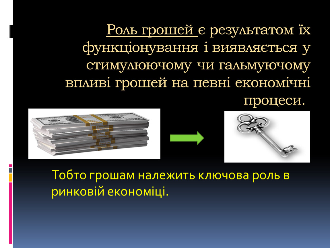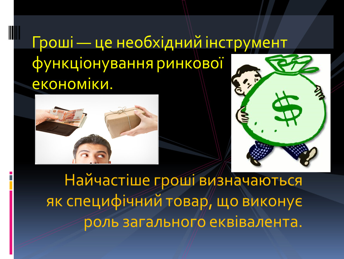 Тобто грошам належить ключова роль в ринковій економіці.