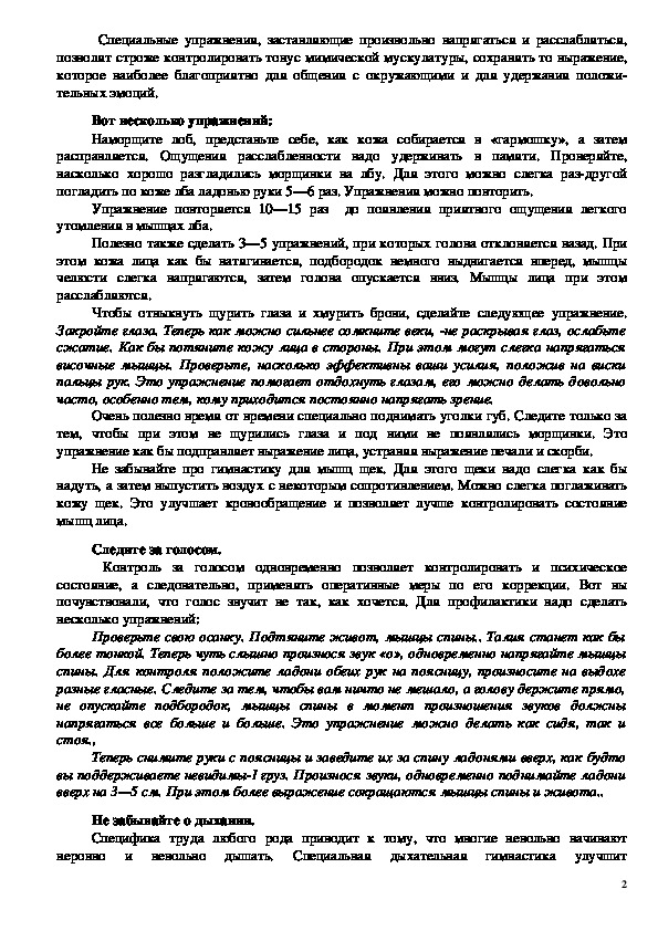 следить за тем, чтобы в процессе работы не хмурился лоб, не сдвигались, брови, не