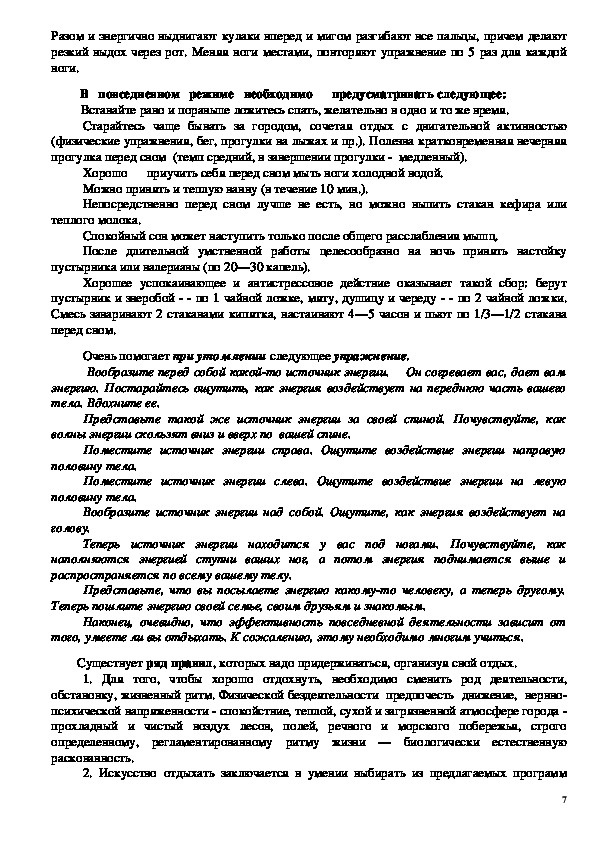 обстановку, жизненный ритм. Физической бездеятельности предпочесть движение, нервно