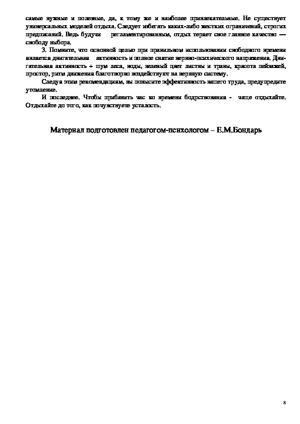 универсальных моделей отдыха. Следует избегать какихлибо жестких ограничений, строгих