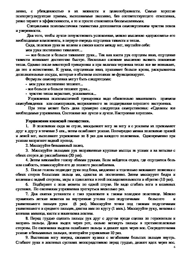 Упражнения психомышечной тренировки надо обязательно заканчивать приемом