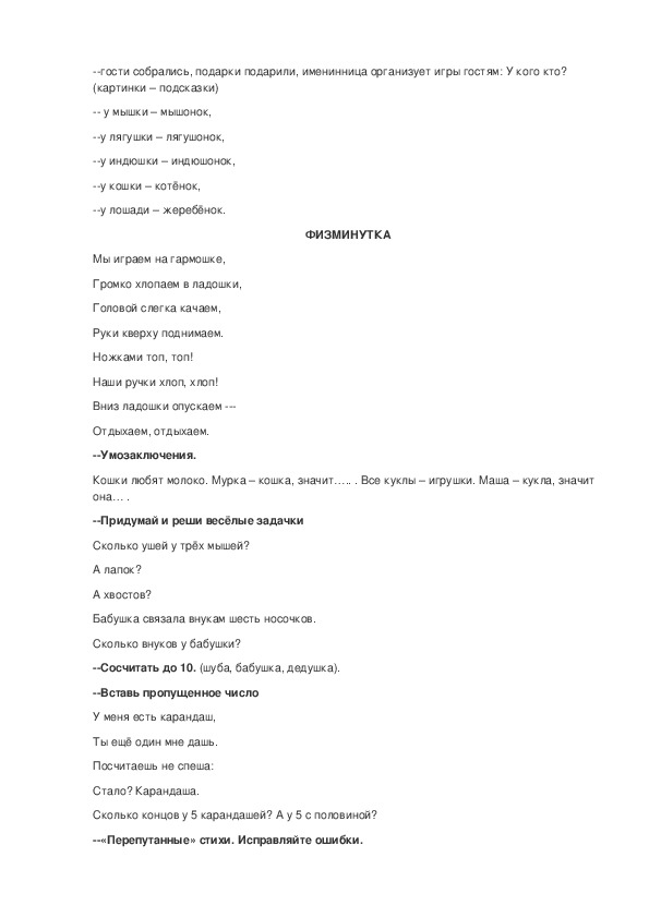середине, конце слова)гости собрались, подарки подарили, именинница организует игры гостям: У кого кто?