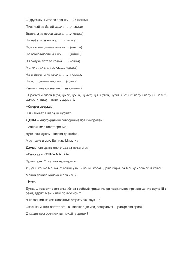 ТЕМА. Автоматизация звука Ш в речи (День рождения буквы - звука Ш) .