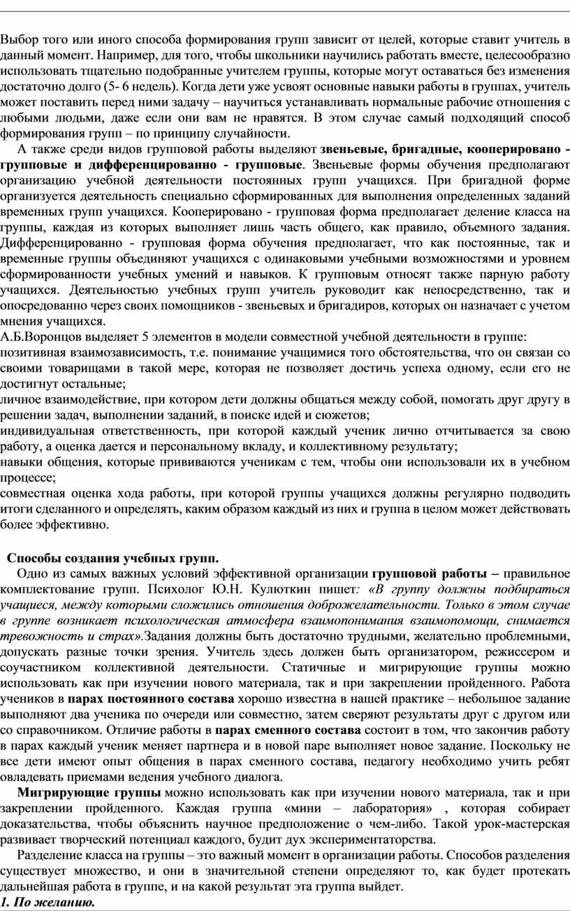 Хотя ведущую роль в групповой работе играют учащиеся, ее эффективность во многом зависит от усилий и мастерства учителя.