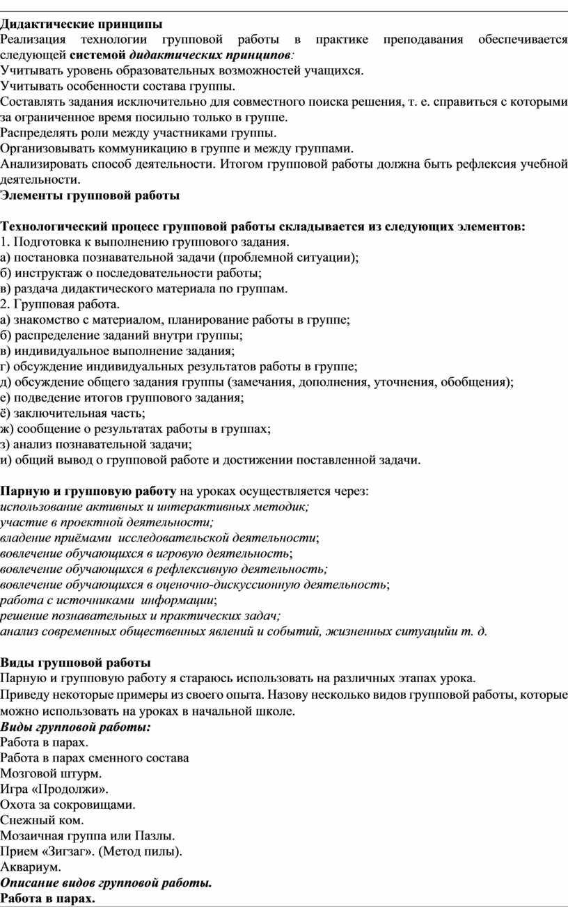 Реализация технологии групповой работы в практике преподавания обеспечивается следующей системой дидактических принципов: