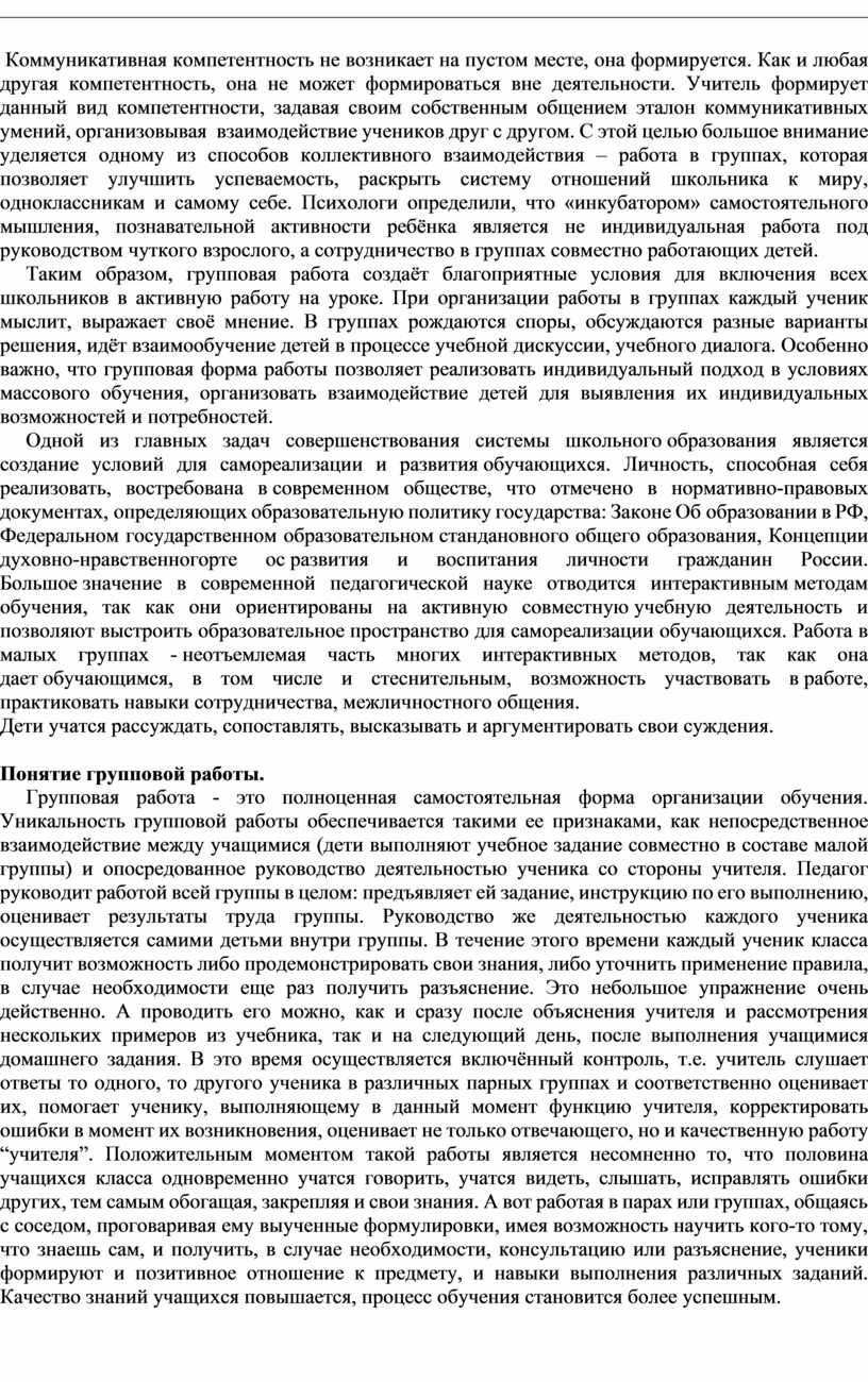 групповой работы учащихся в нашей школе подтверждает, что эта форма работы как