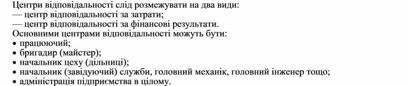 Для побудови внутрішньогосподарського обліку використовується. додатковий об’єкт обліку — центри відповідальності.