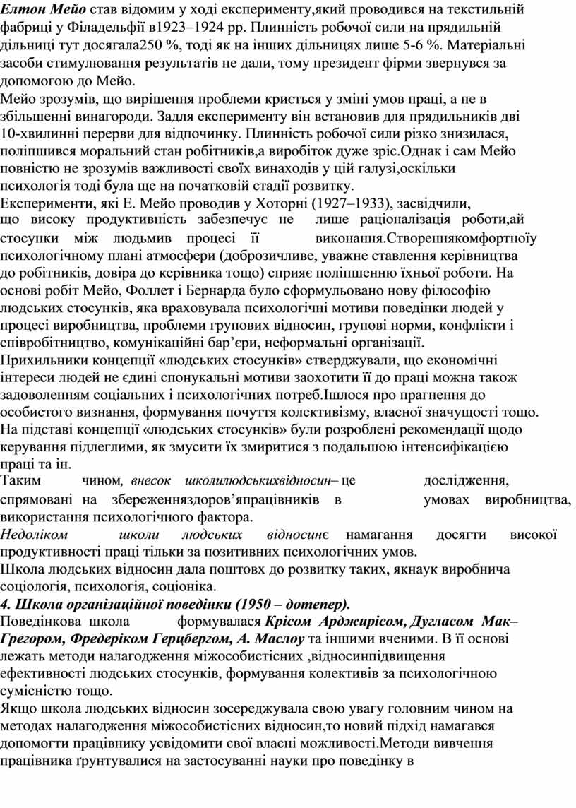До недоліків школи наукового управління належать:розглядання праці |