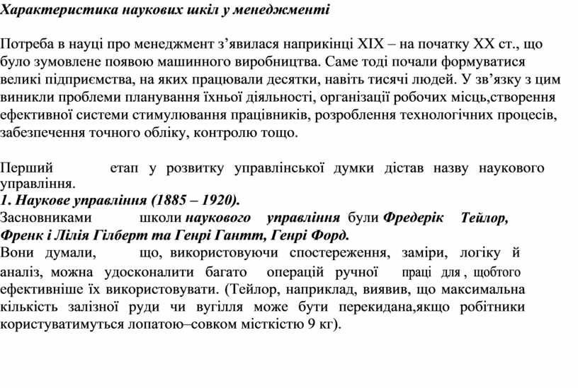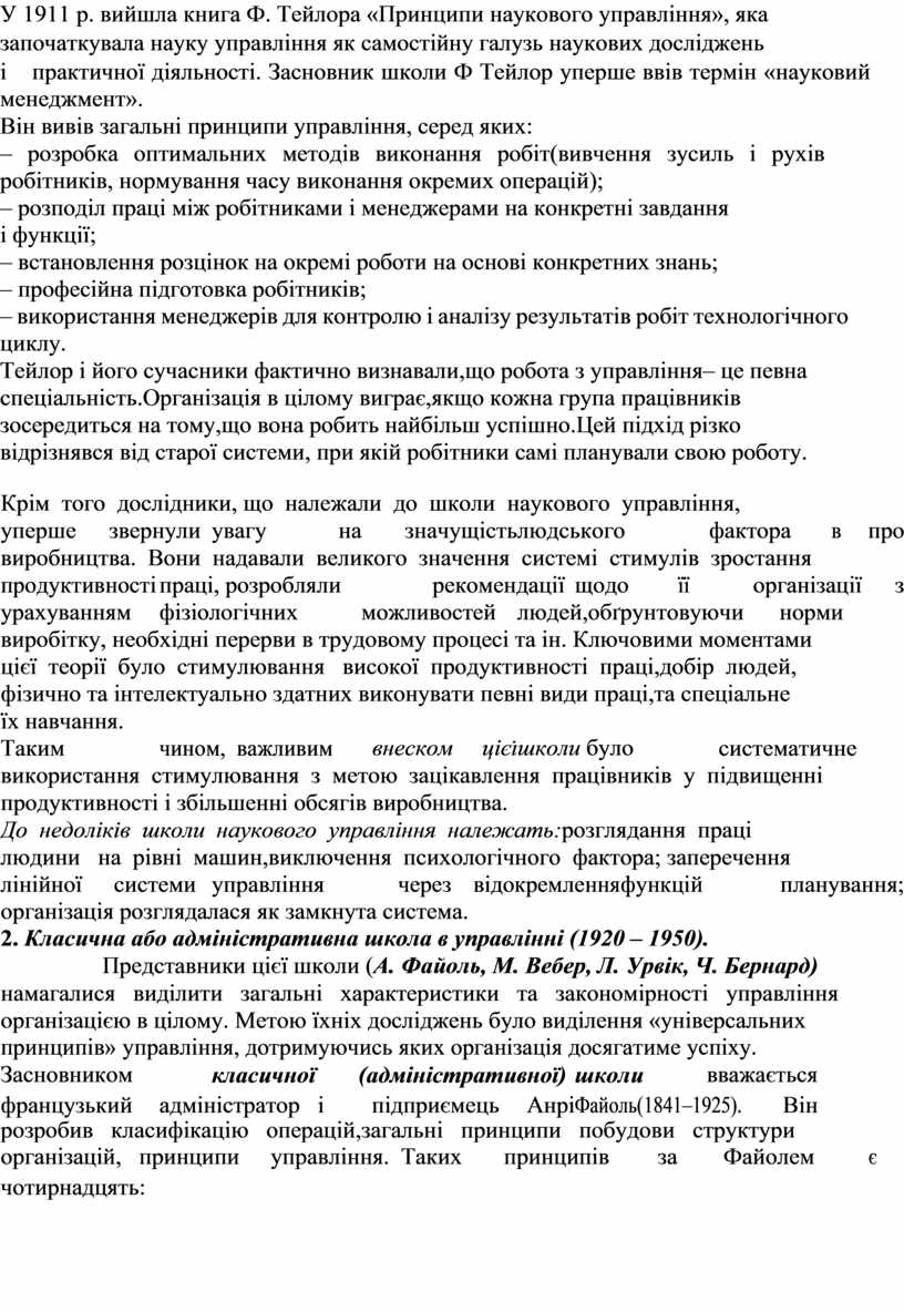 і практичної діяльності. Засновник школи Ф Тейлор уперше ввів термін «науковий менеджмент».