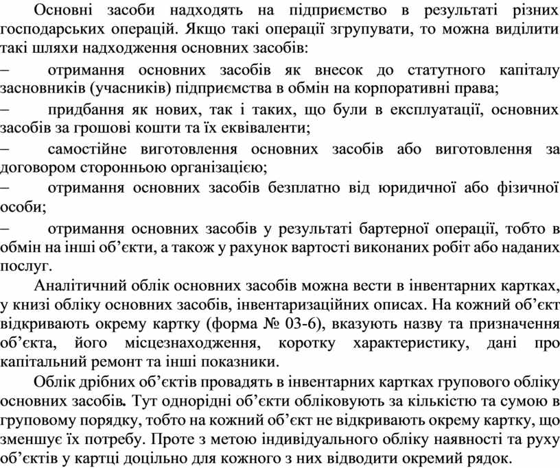 Основні засоби надходять на підприємство в результаті різних господарських операцій. Якщо такі операції згрупувати, то можна виділити такі шляхи надходження основних засобів: