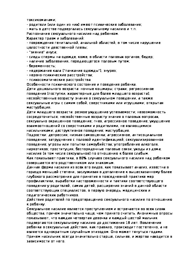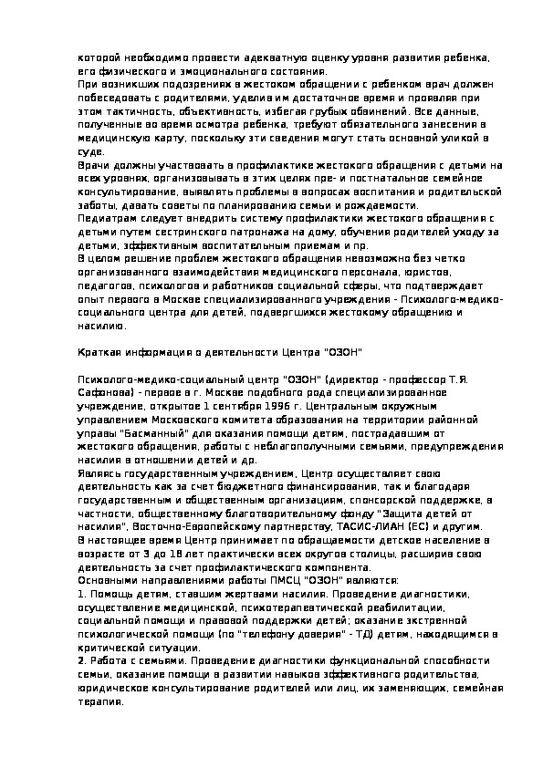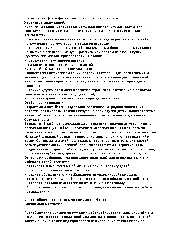 соматических или психических заболеваний; они гиперактивны, неусидчивы.Распознание факта физического насилия над ребенком.