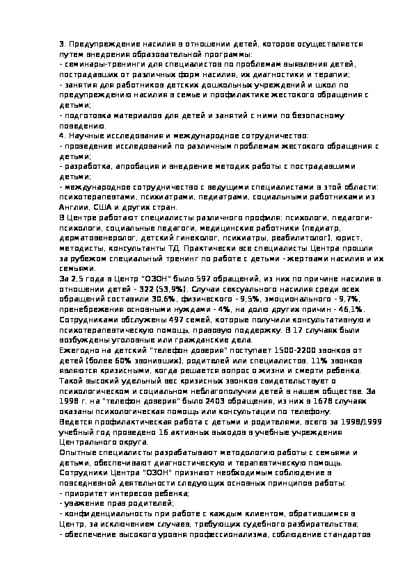 терапия.3. Предупреждение насилия в отношении детей, которое осуществляется