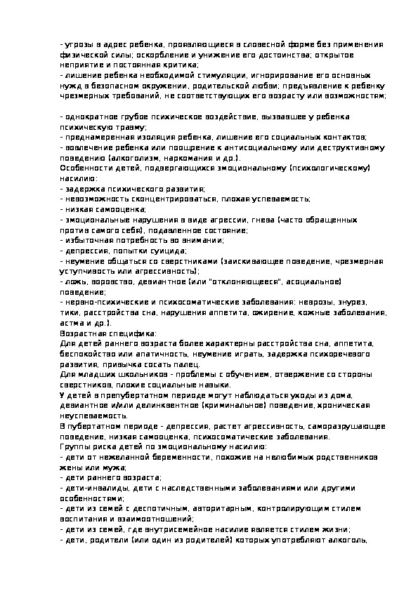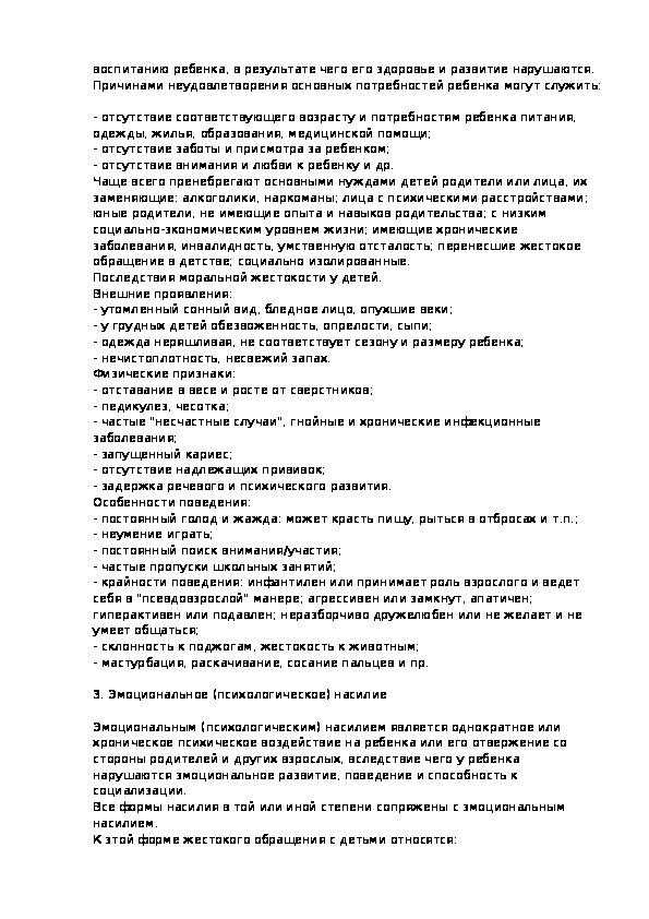 Характеристика основных форм жестокого обращения с детьми