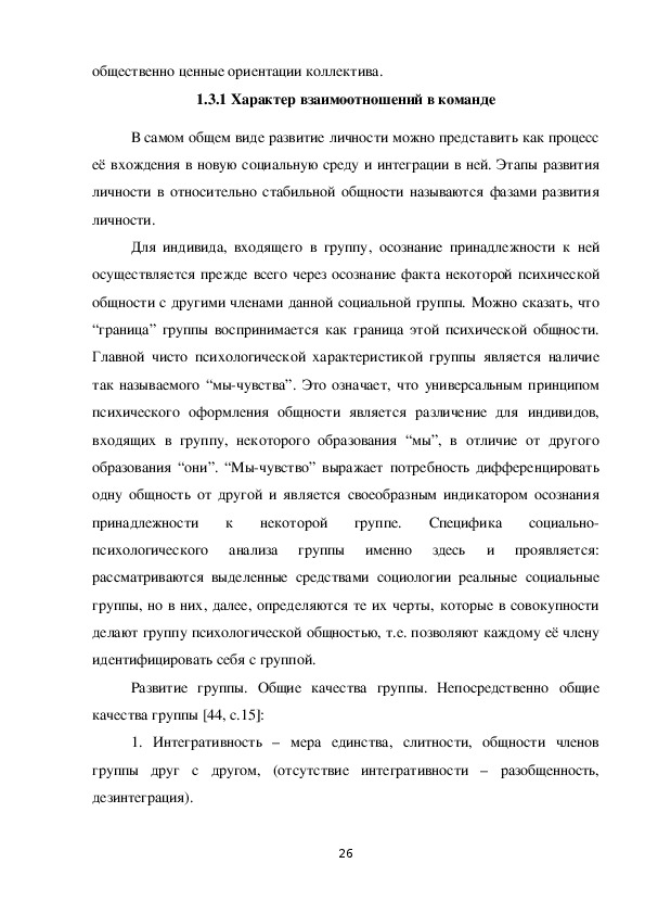 1.3.1 Характер взаимоотношений в команде.......................................................26