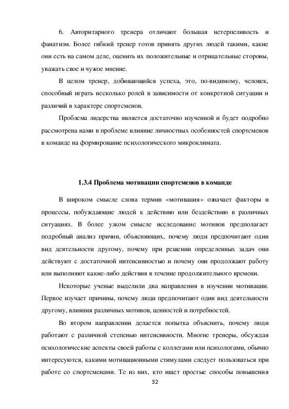 1.3.4 Проблема мотивации спортсменов в команде............................................32