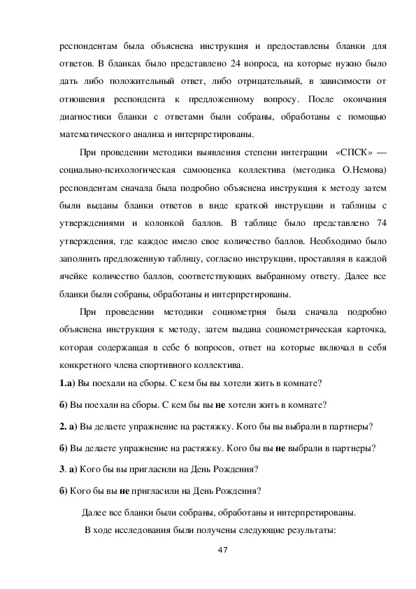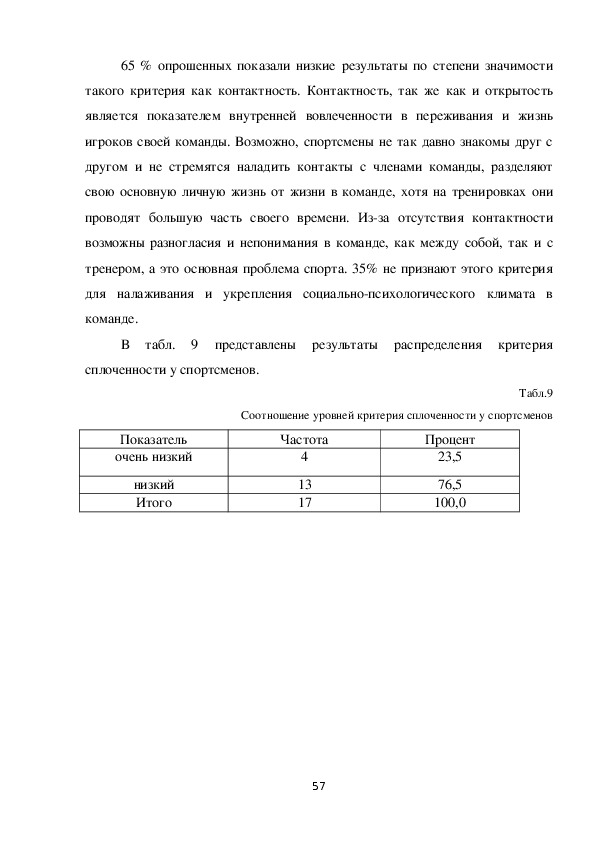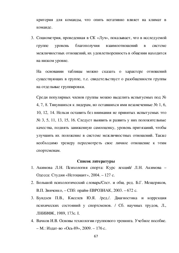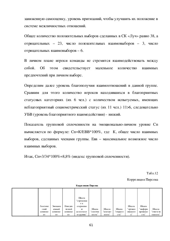 Итак, Сп=3/34*100%=8,8% (индекс групповой сплоченности).