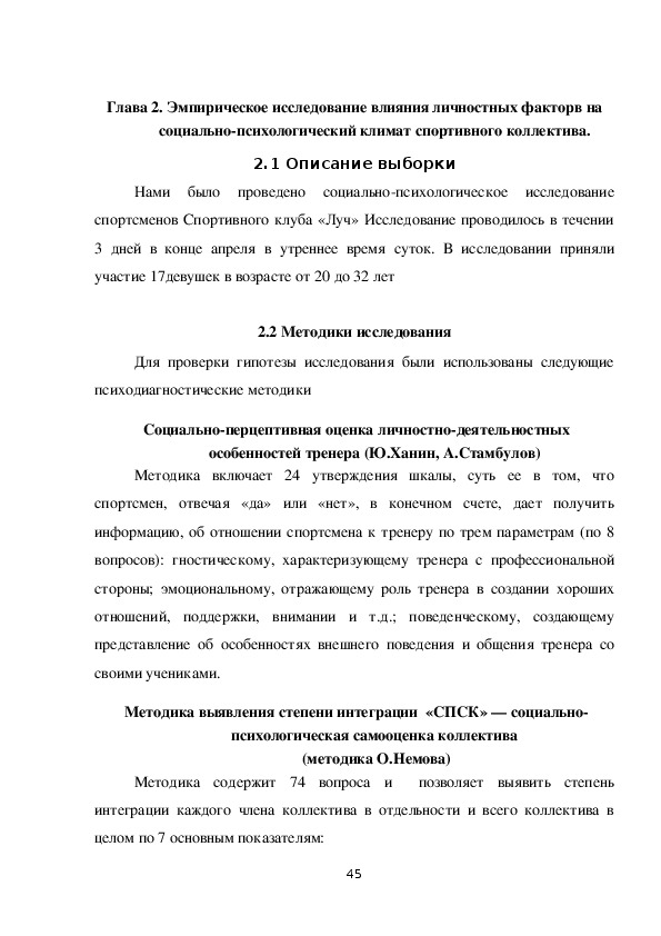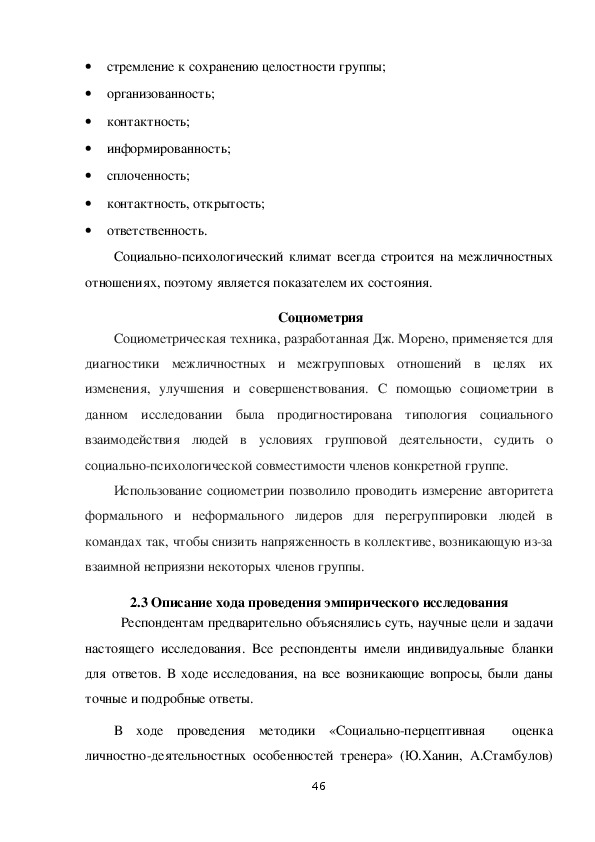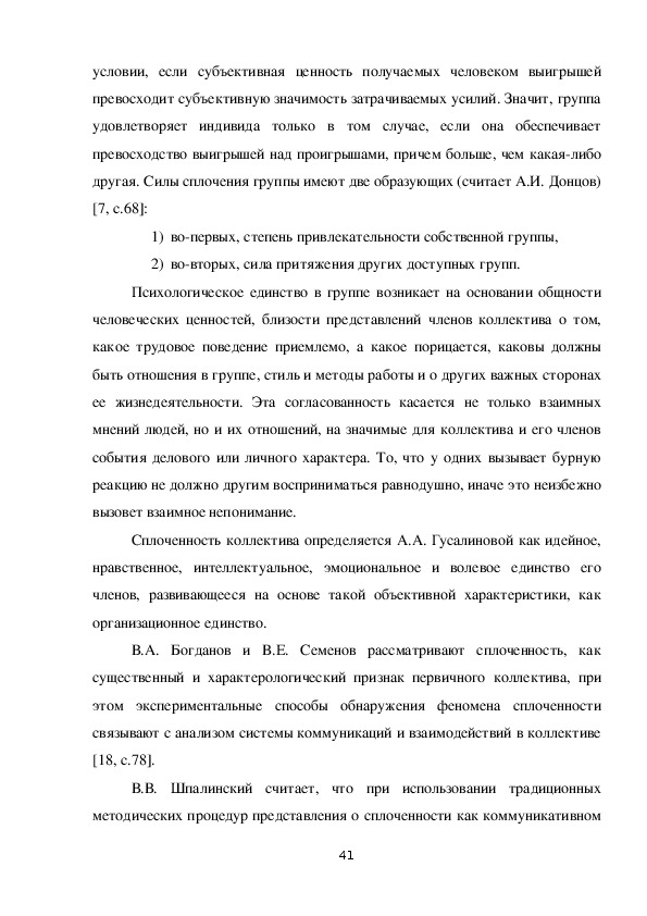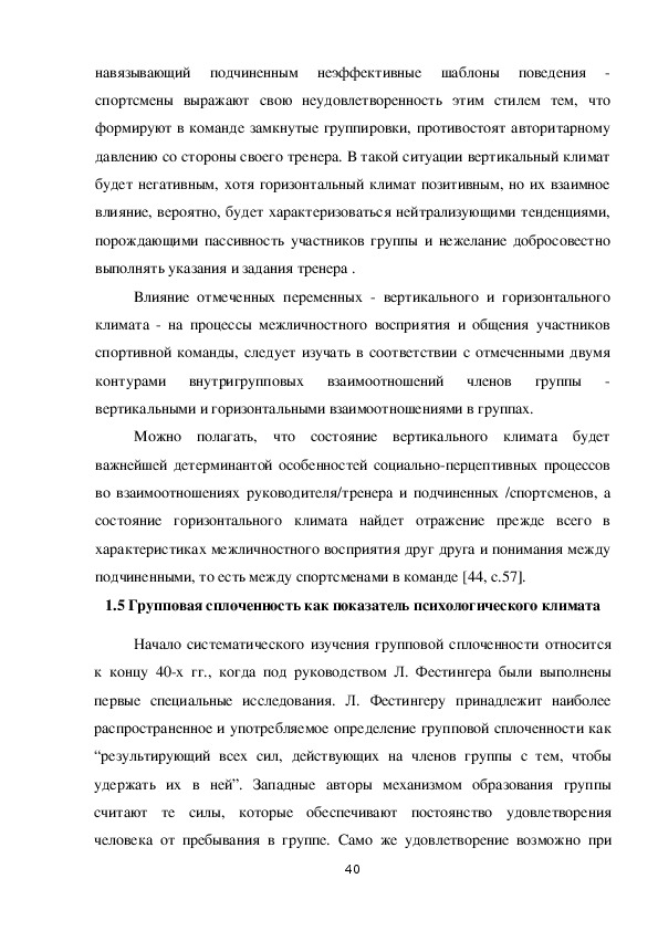 1.5 Групповая сплоченность как показатель психологического климата.........40