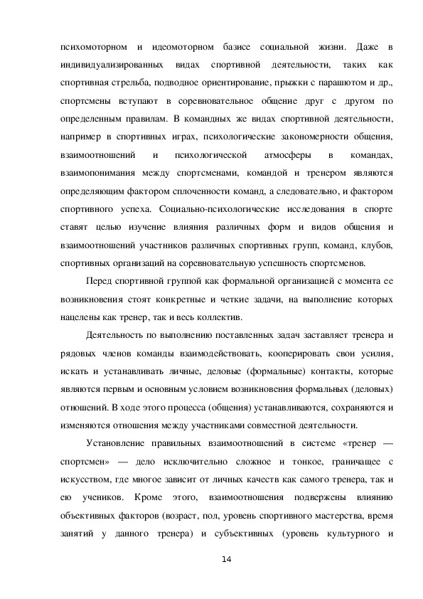 Современный спорт с полным основанием может рассматриваться совместной коллективной деятельностью, включающей в себя весь спектр социально-педагогических и социально-психологических проблем общения, взаимовлияний, лидерства в малых группах, стилей и методов руководства коллективами и командами. Психолого-педагогическое обеспечение подготовки высококвалифицированных спортсменов выражается, прежде всего, в слаженной организации совместной деятельности спортсменов в команде и их тренеров в учебно-тренировочном процессе и во время соревнований.