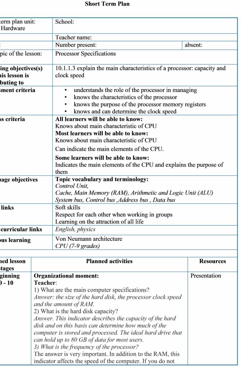 All learners will be able to know: Knows about main characteristic of CPU Most learners will be able to know: Knows about main characteristic of CPU Can indicate the main elements of the CPU. Some learners will be able to know: Indicates the main elements of the CPU and explains the purpose of them |
