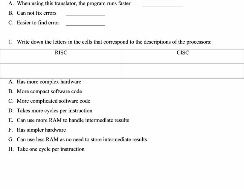 3. Write down the letters in the cells that correspond to the descriptions of the processors: