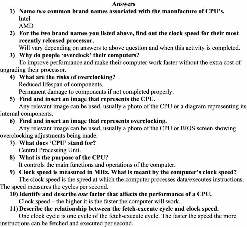 11. Describe the relationship between the fetch-execute cycle and clock speed.