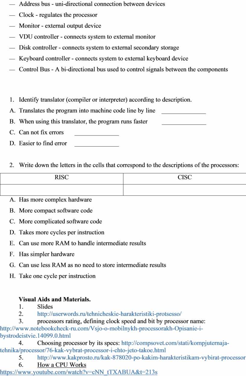 3. Write down the letters in the cells that correspond to the descriptions of the processors: