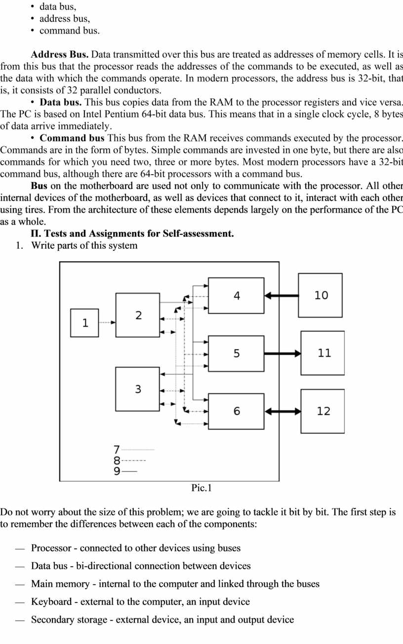 • Data bus. This bus copies data from the RAM to the processor registers and vice versa. The PC is based on Intel Pentium 64-bit data bus. This means that in a single clock cycle, 8 bytes of data arrive immediately.