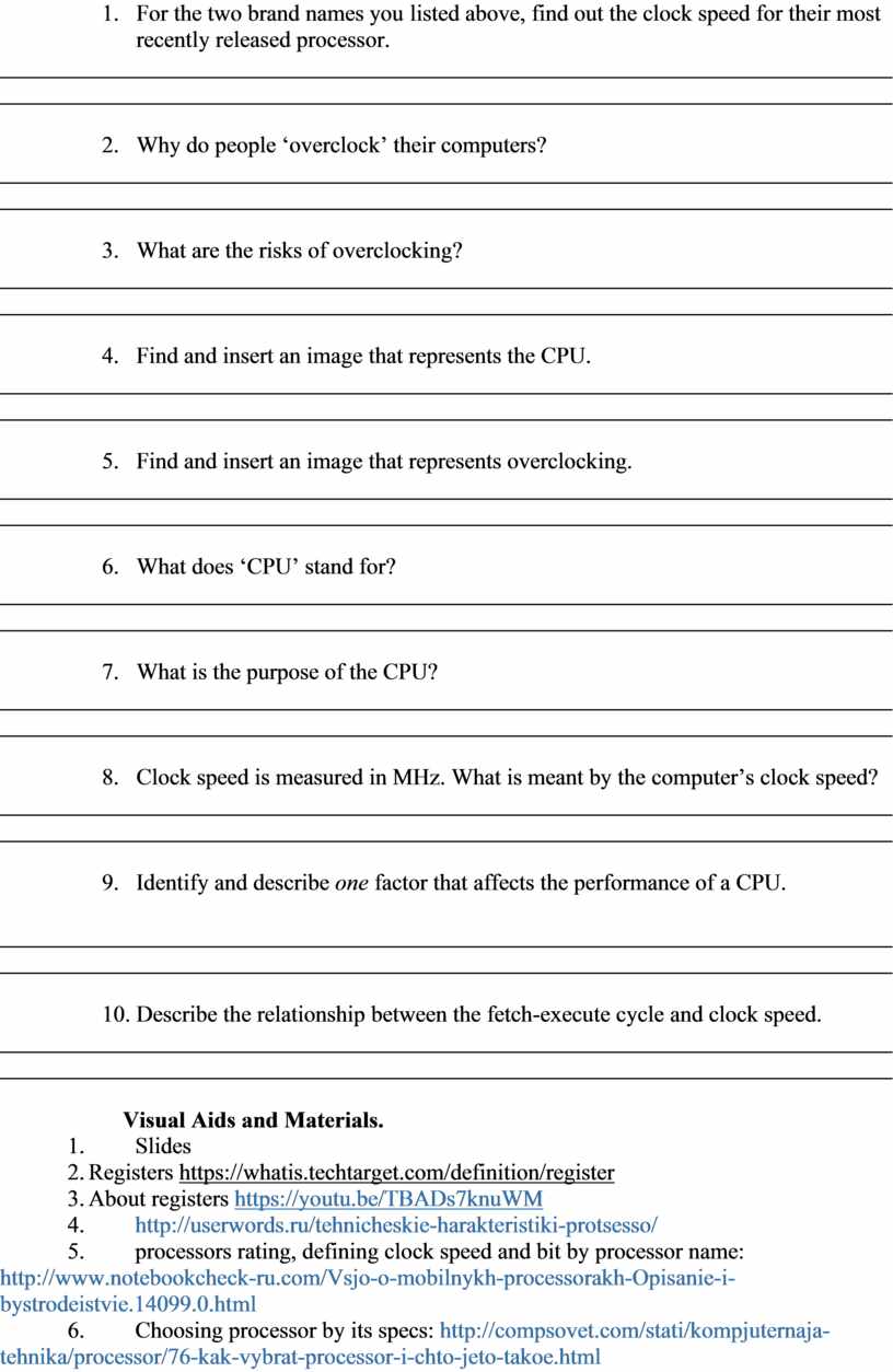 9. Clock speed is measured in MHz. What is meant by the computer’s clock speed?