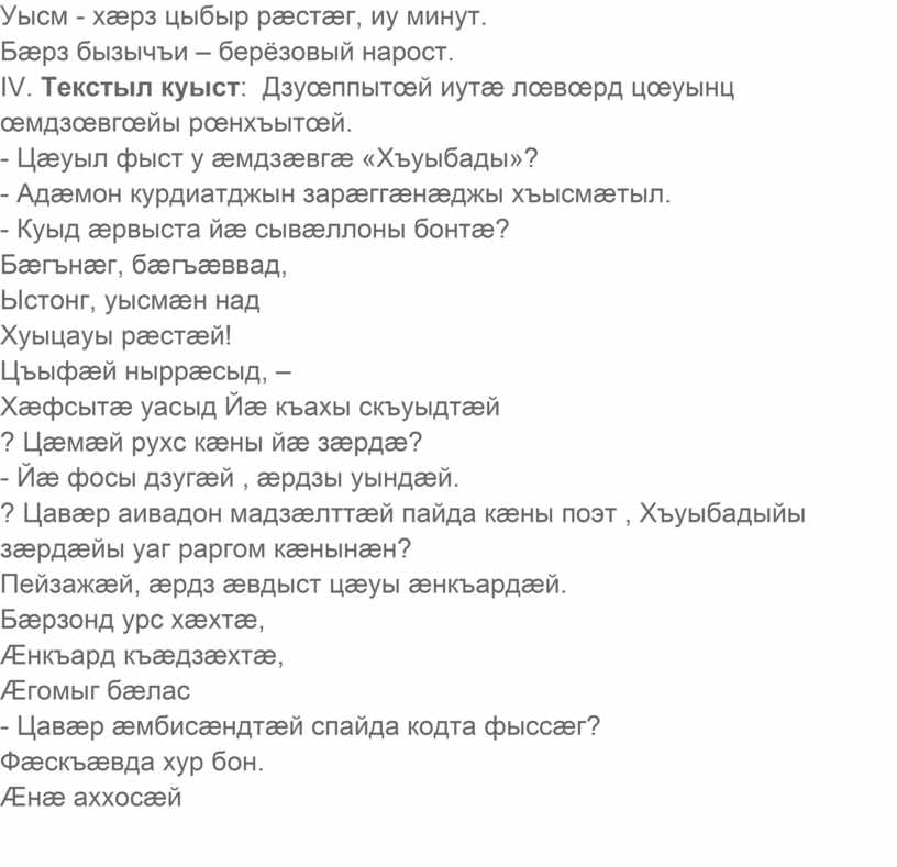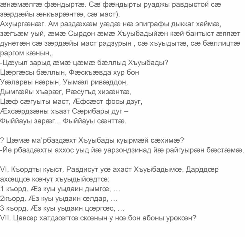 æмдзæвгæ «Хъуыбады»-мæ гæсгæ.