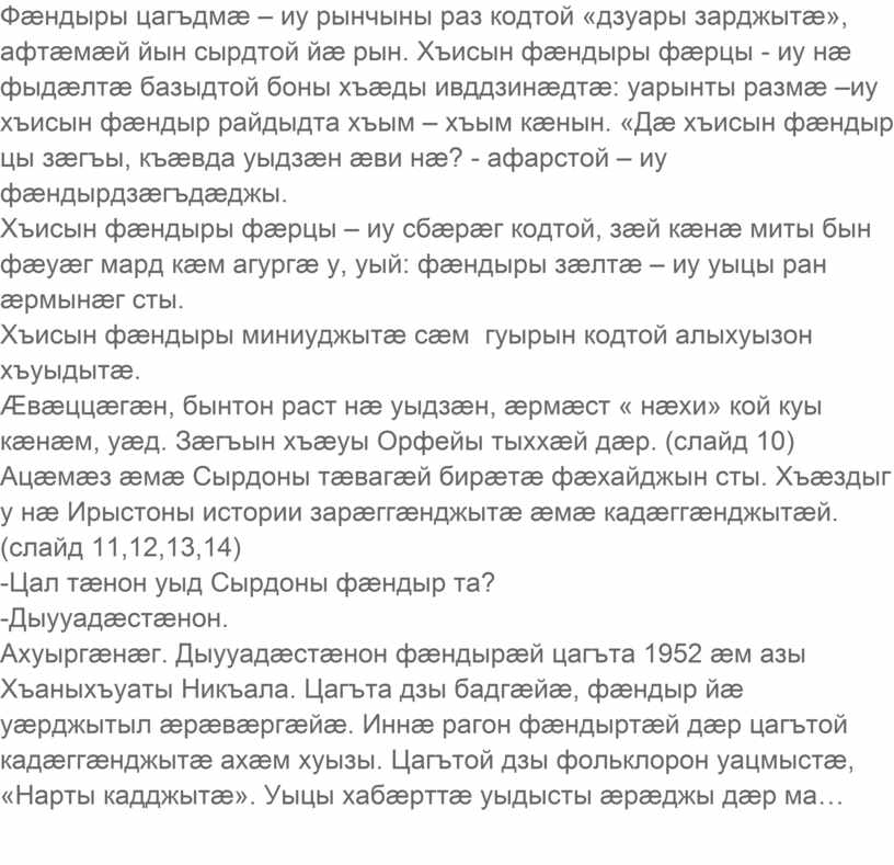 Хъуысы хъисын фœндыры цагъд. (слайд 1)