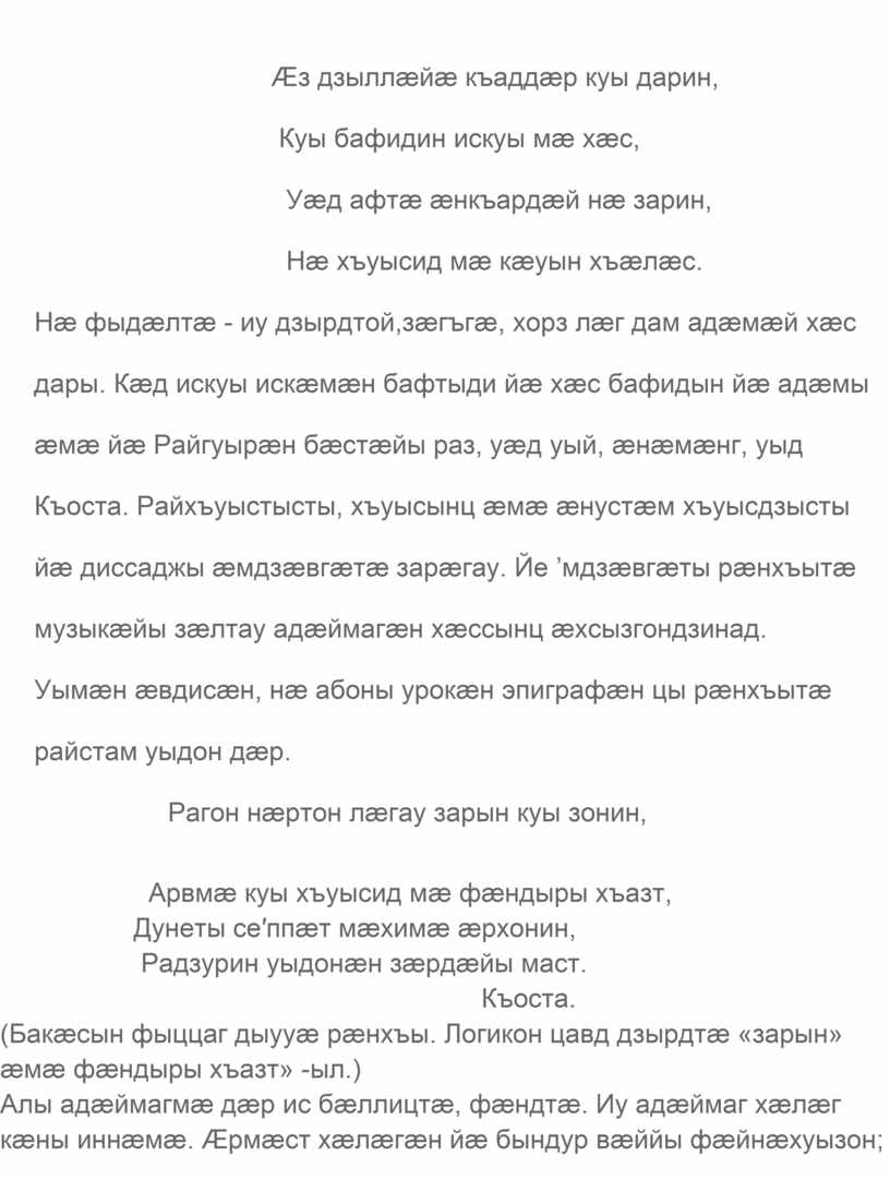 зарæггæнæг æмæ йæ хъысмæтыл.