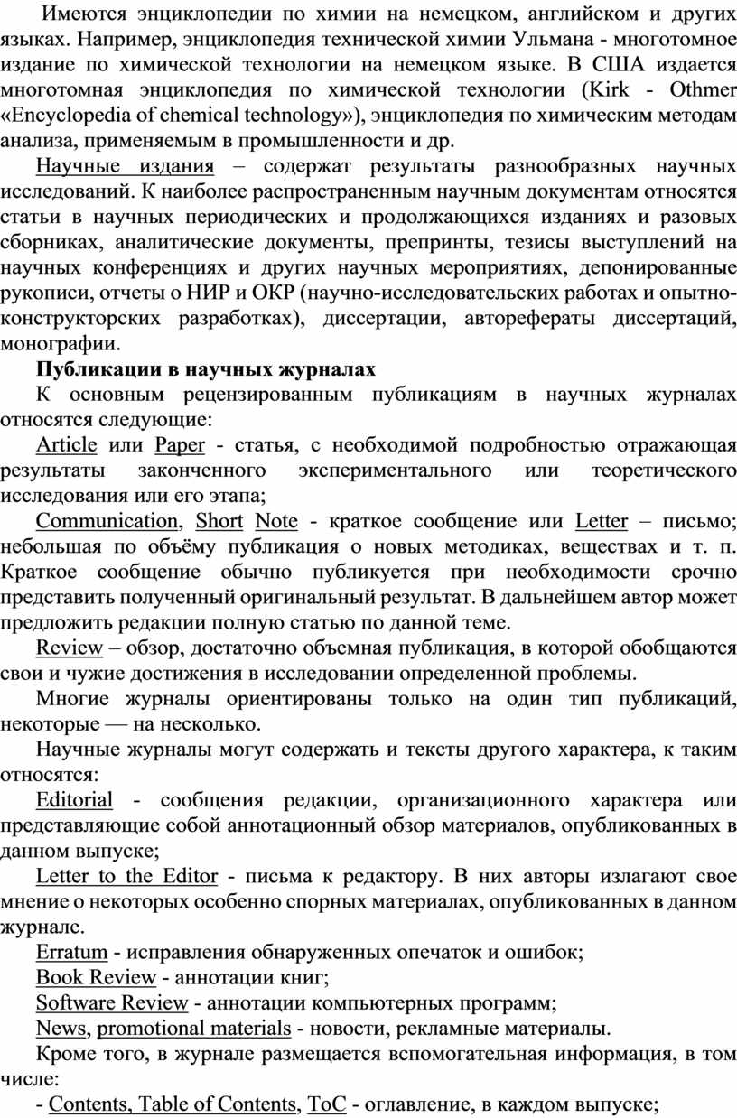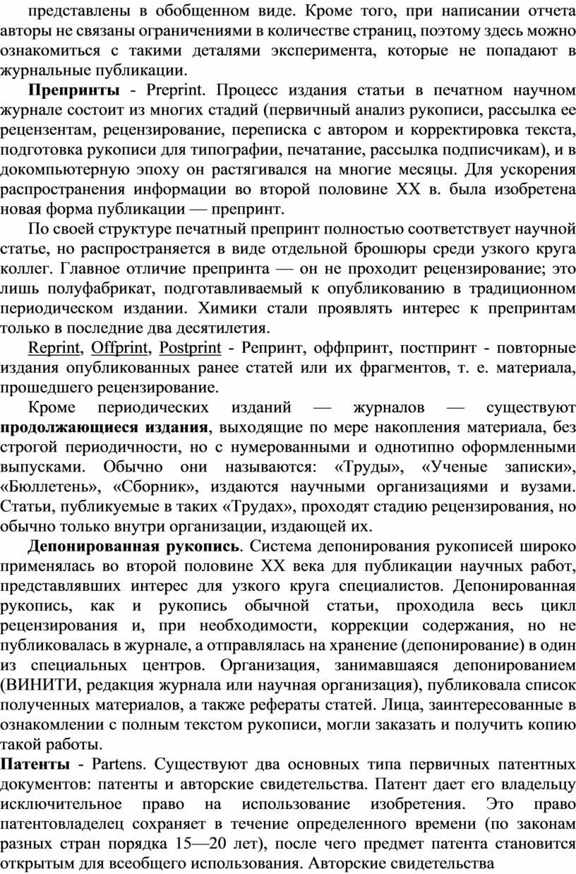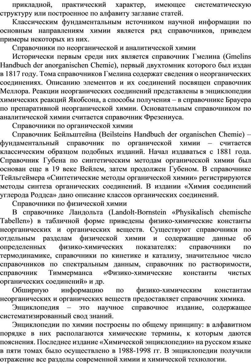 В разделе 1 рассматриваются основные виды традиционных источников химической информации, которые существуют в бумажном виде и постепенно переводятся в электронный.