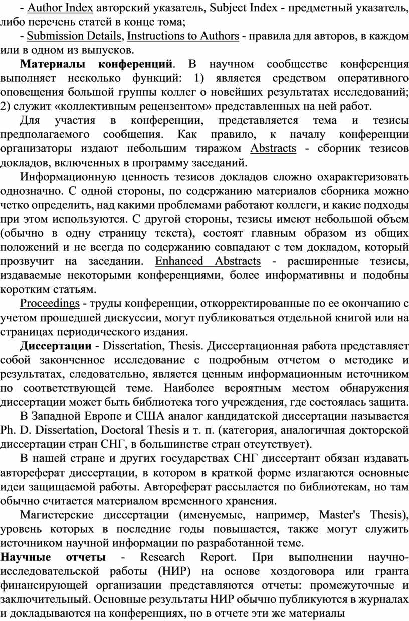 Магистерские диссертации (именуемые, например, Master's Thesis), уровень которых в последние годы повышается, также могут служить источником научной информации по разработанной теме.