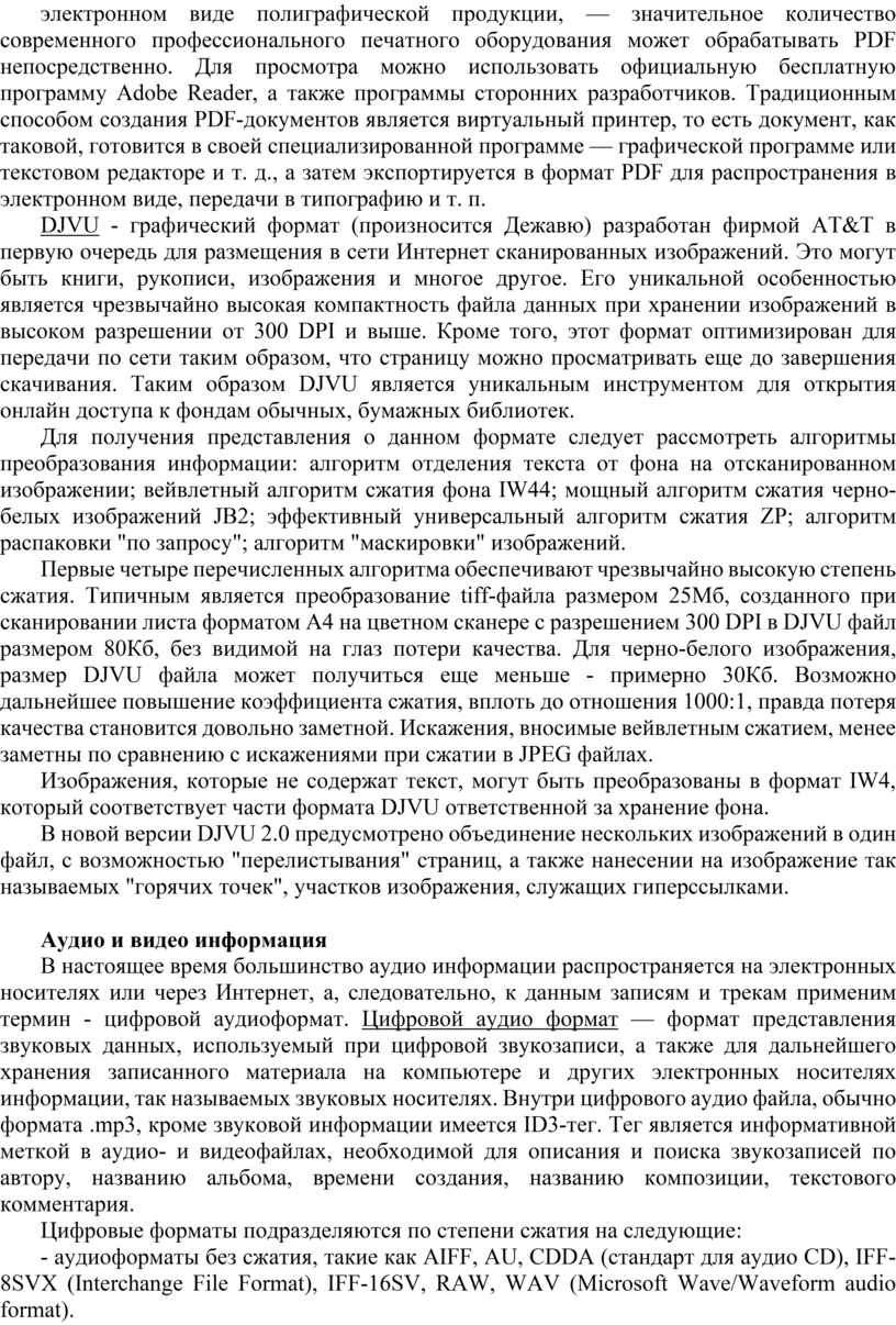 Более подробно следует проанализировать комплексные форматы PDF и DJVU.