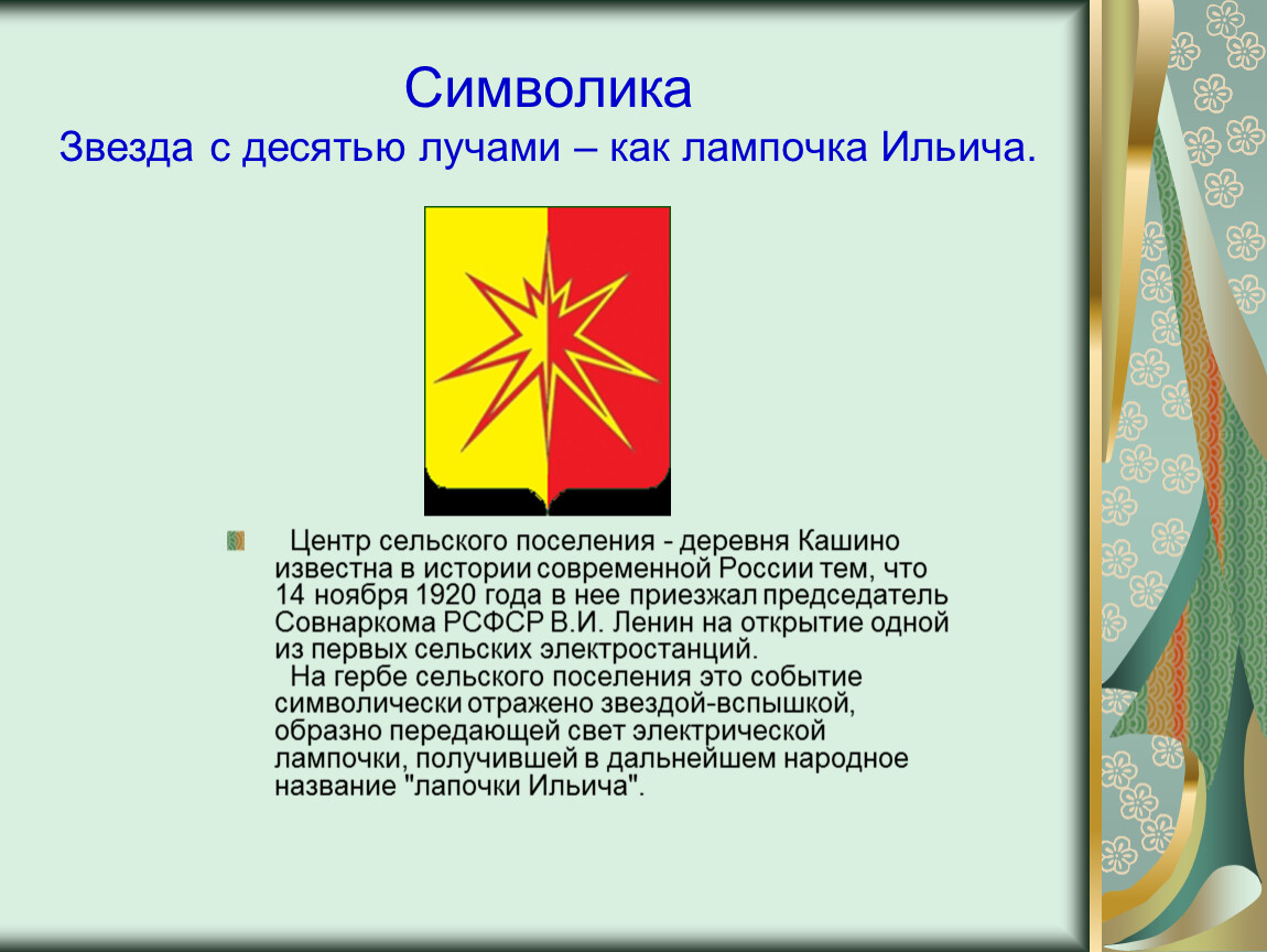 СимволикаЗвезда с десятью лучами – как лампочка Ильича.