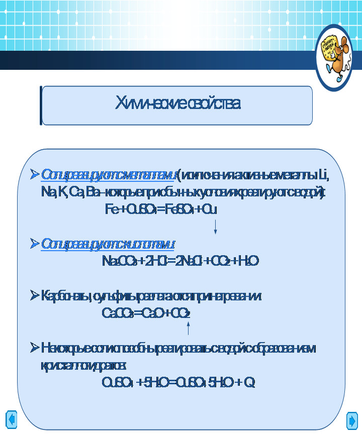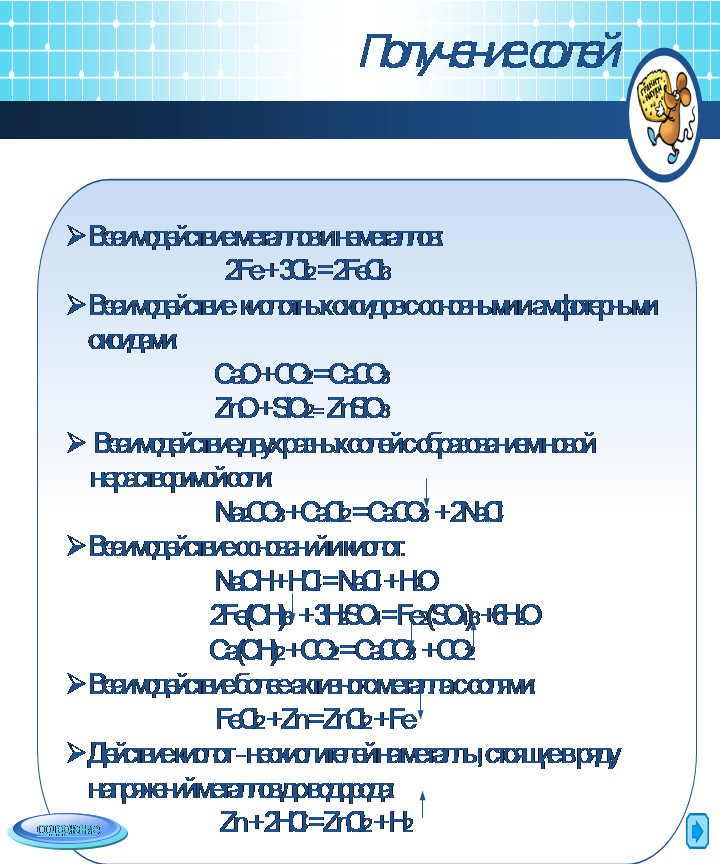 Взаимодействие кислотных оксидов с основными и амфотерными оксидами: