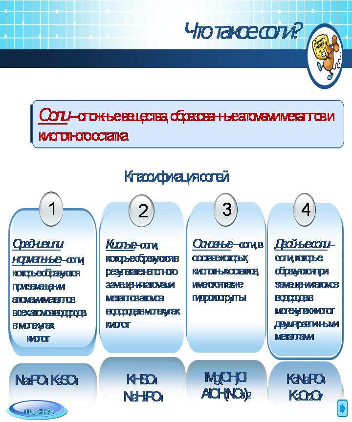 Соли – сложные вещества, образованные атомами металлов и кислотного остатка