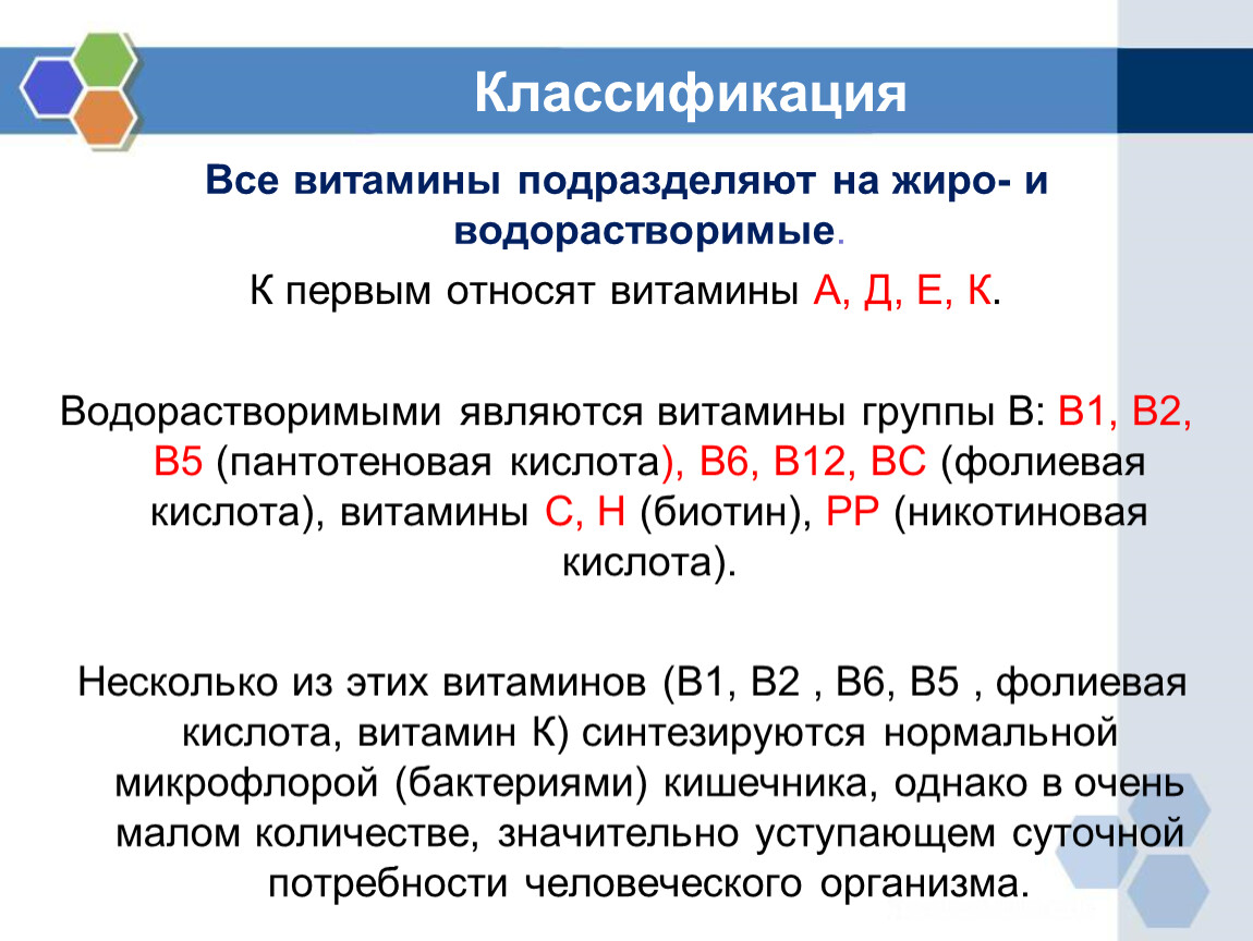 Несколько из этих витаминов (В1, В2 , В6, В5 , фолиевая кислота, витамин К) синтезируются нормальной микрофлорой (бактериями) кишечника, однако в очень малом количестве, значительно уступающем суточной потребности человеческого организма.