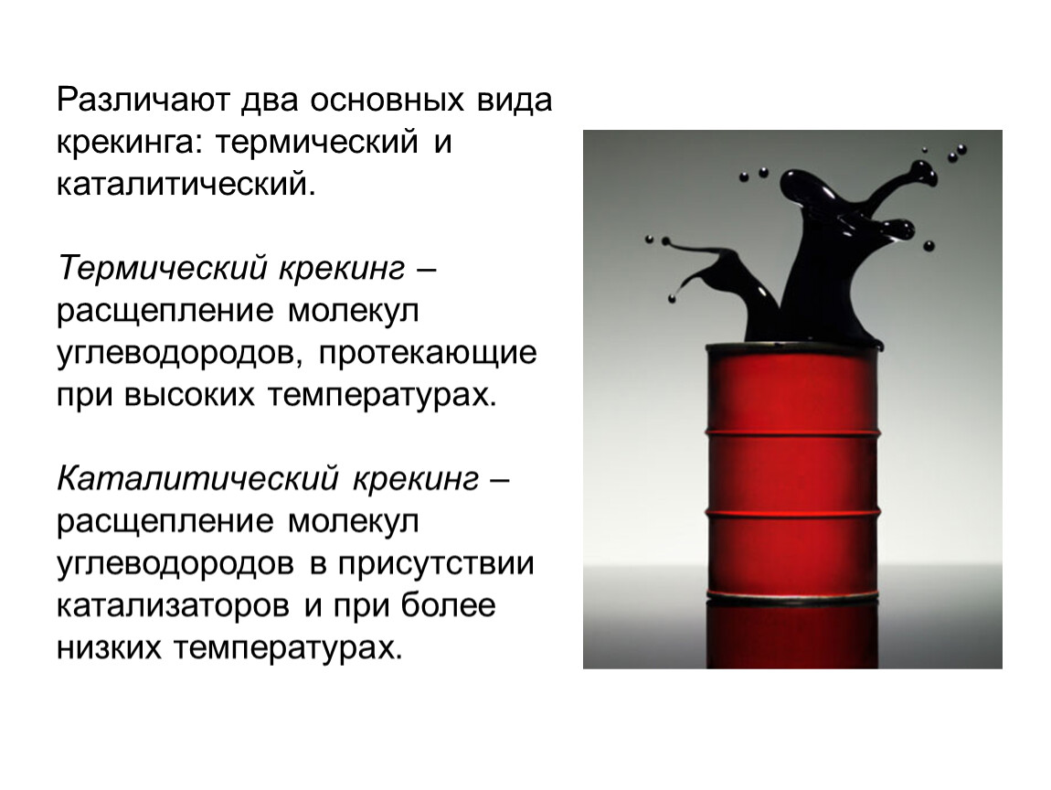 Различают два основных вида крекинга: термический и каталитический.