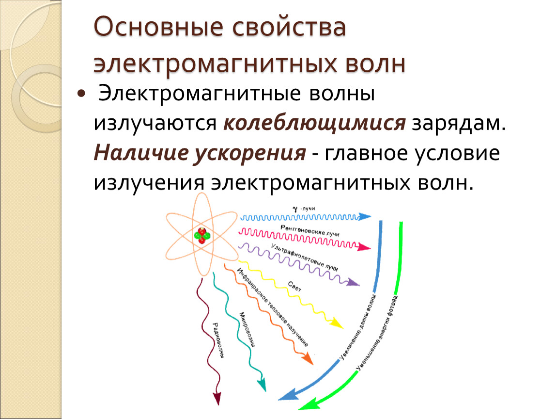 Электромагнитные волны излучаются колеблющимися зарядам.Наличие ускорения - главное условие излучения электромагнитных волн.
