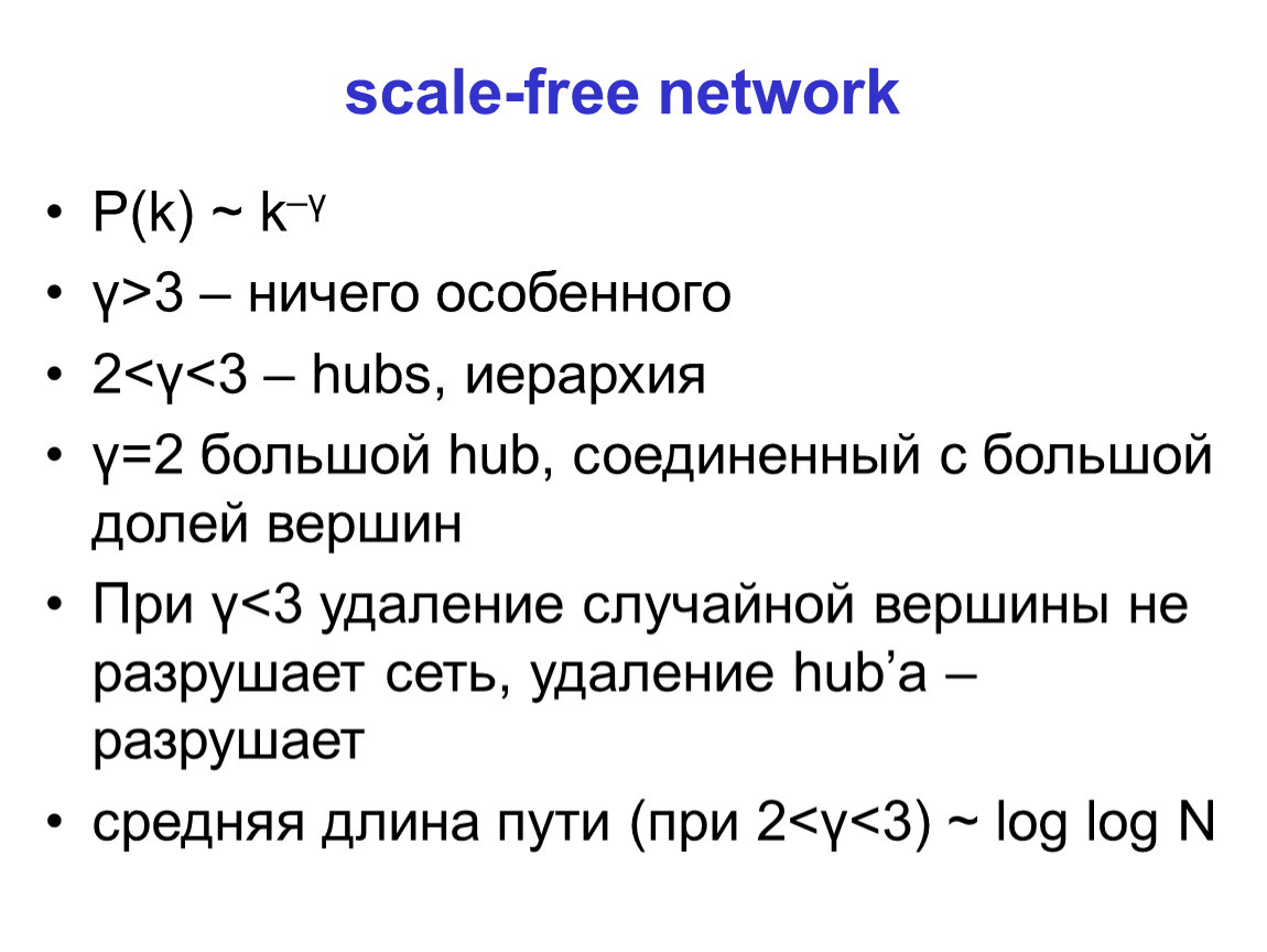 2<γ<3 – hubs, иерархия