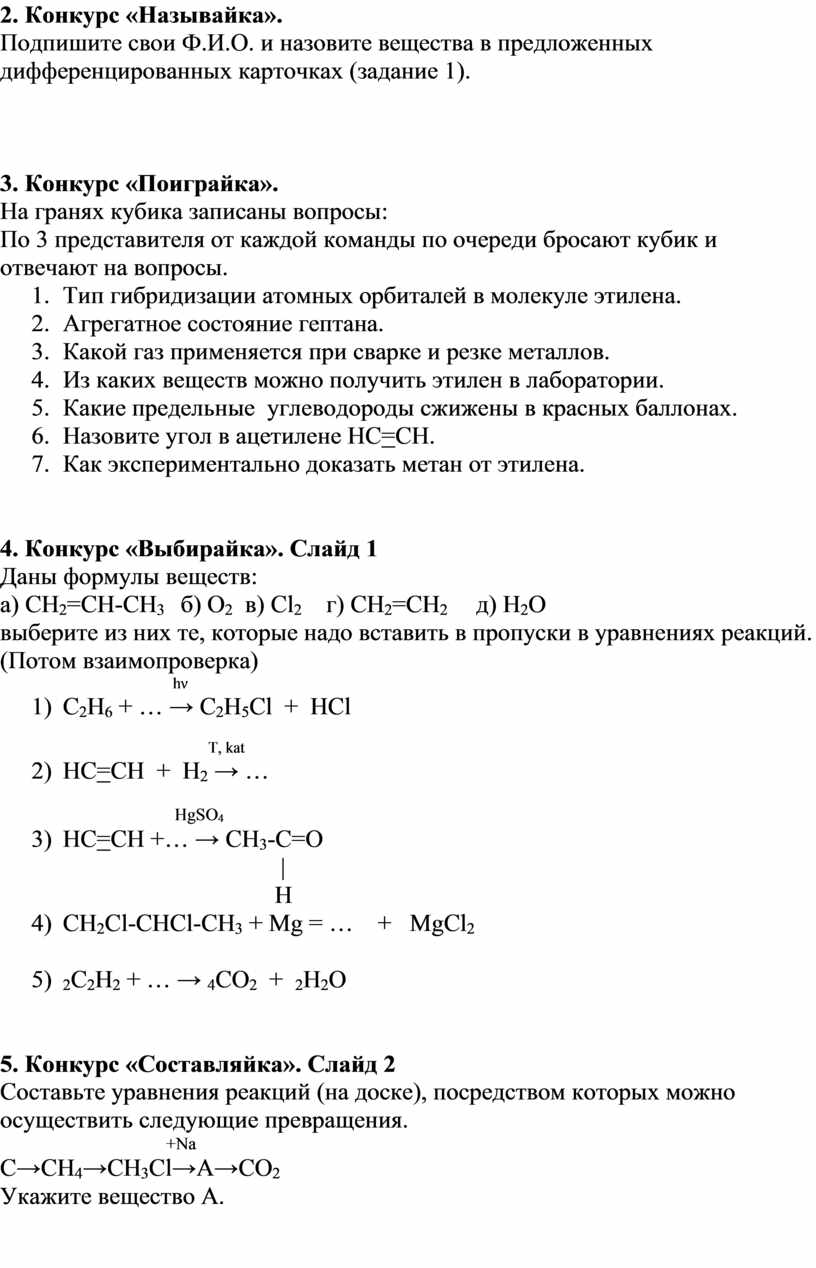выберите из них те, которые надо вставить в пропуски в уравнениях реакций. (Потом взаимопроверка)