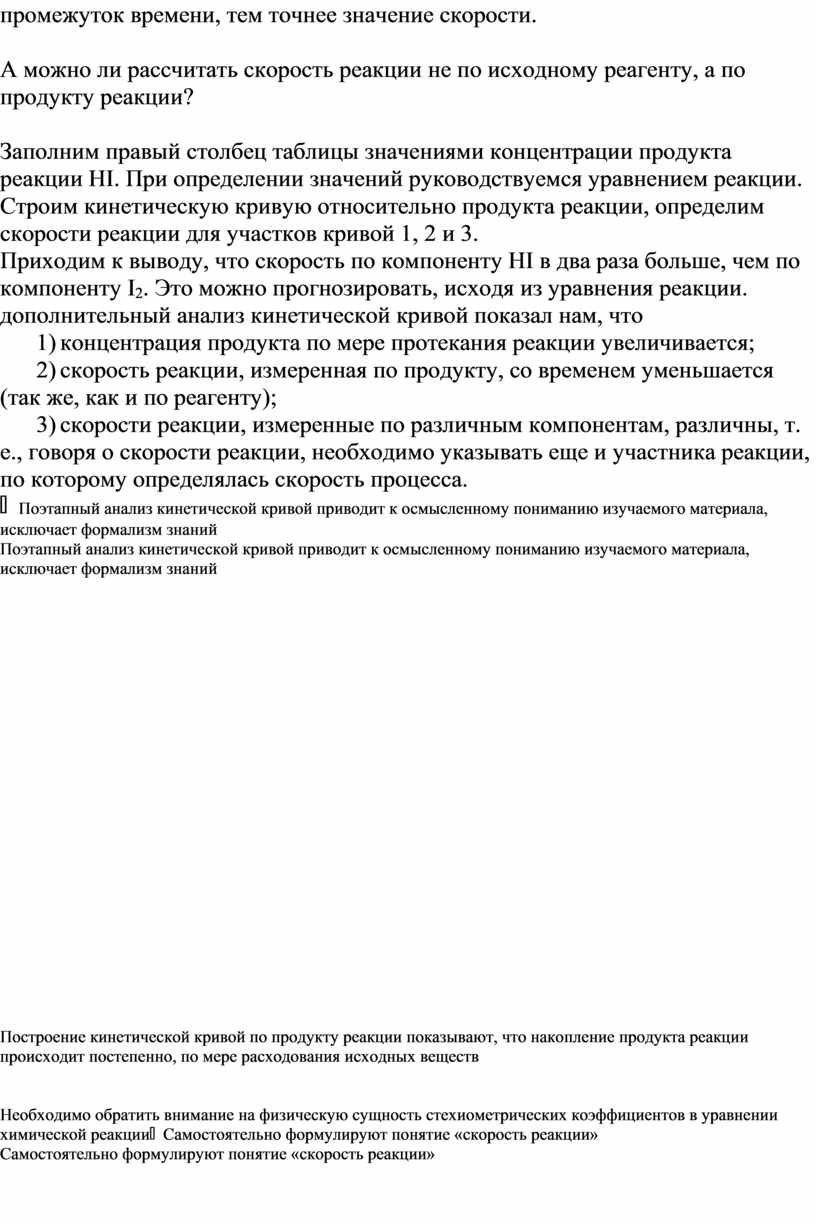Поэтапный анализ кинетической кривой приводит к осмысленному пониманию изучаемого материала, исключает формализм знаний