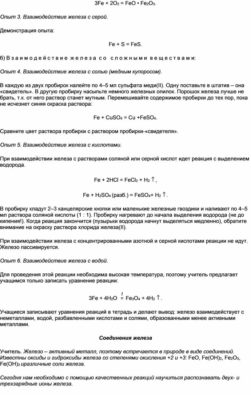 Вывод: Железо – активный металл, реагирует с простыми и сложными веществами. В