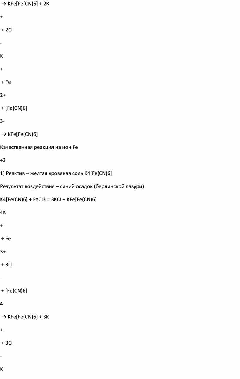 1) Реактив – желтая кровяная соль K4[Fe(CN)6]