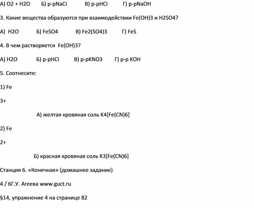 3. Какие вещества образуются при взаимодействии Fe(OH)3 и H2SO4?