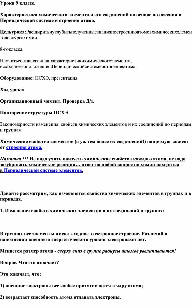 Характеристика химического элемента и его соединений на основе положения в Периодической системе и строения атома.