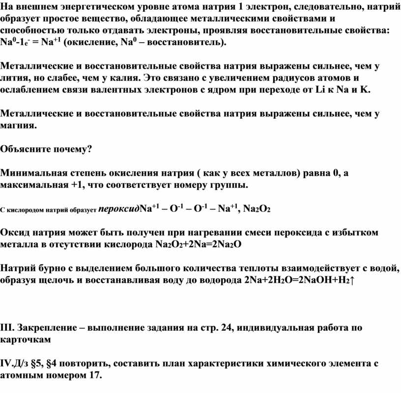 Металлические и восстановительные свойства натрия выражены сильнее, чем у лития, но слабее, чем у калия. Это связано с увеличением радиусов атомов и ослаблением связи валентных электронов с ядром при переходе от Li к Na и K.