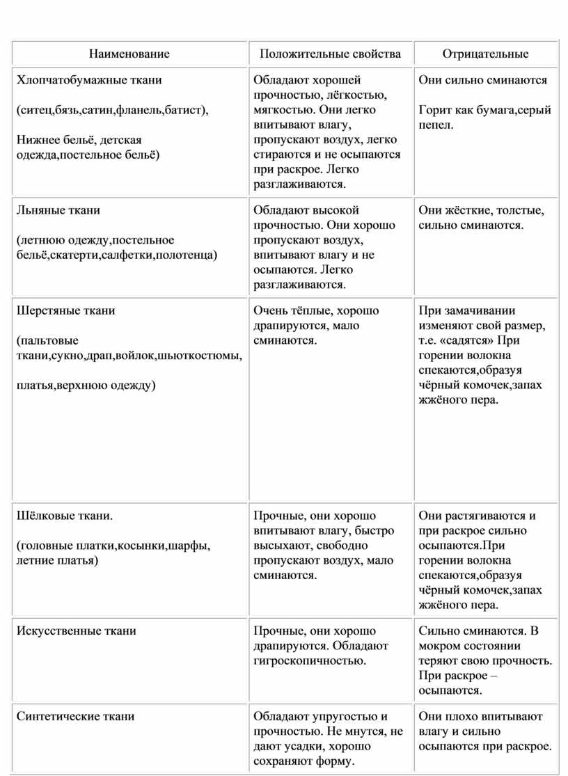 -Назовите свойства льняных тканей.(Прочные, хорошо пропускают воздух, впитывают влагу и не осыпаются. Легко утюжатся. Недостатки: жесткие, сильно мнутся)